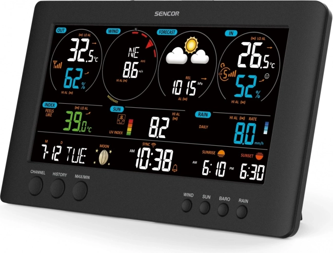 Få det fulde overblik over vejret med en elegant vejrstation med Wi‑Fi‑tilslutning. Den store 21,4 cm LCD‑skærm viser nøgleværdier tydeligt og læsbart fra forskellige vinkler. Med trådløse sensorer får du præcise realtidsdata om temperatur, luftfugtighed, vind og nedbør.
