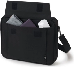 Din bærbare er i sikkerhed i det polstrede rum med stabiliserende elastisk rem, mens metalrammen øger stivhed og beskyttelse. Forlommen rummer telefon, kabler, penne og oplader, så du har alt ved hånden. Takket være den lave vægt, den aftagelige og justerbare rem og remmen til kuffergreb er tasken nem at transportere.