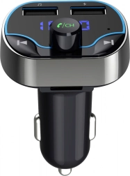 Enheden har to USB-porte til samtidig opladning og musikafspilning, et intuitivt betjeningshjul og et klart LED-display for nem indstilling af frekvens. Det kompakte design til cigarettænderen 12/24 V sparer plads og er kompatibelt med de fleste køretøjer.