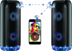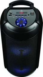 Indeni finder du 2 × 4" (102 mm) drivere med bassrefleks for mere markant bas og klare højder i området 40 Hz – 20 kHz. Det indbyggede Li-Ion-batteri på 1200 mAh giver 4–8 timers musik, og opladning sker nemt via micro USB. Betjeningen klares med multimedieknapper, en drejeknap og et overskueligt LED-display. RGB-belysningen på højttalerne og soklen kan slås fra med et langt tryk på M-knappen.