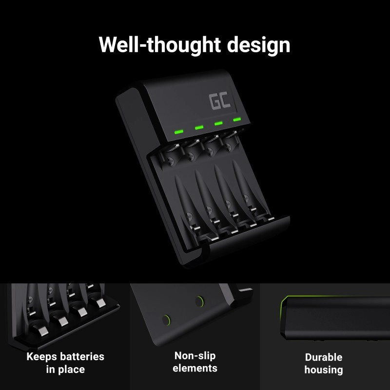 De fire uafhængige kanaler gør det muligt at oplade 1 til 4 AA/AAA-celler på én gang. LED-dioder viser tydeligt forløb og status for hvert batteri separat.