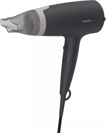 Nyd daglig pleje med PHILIPS hårtørrere: den stærke effekt på 2100 W sikrer hurtig tørring, mens ThermoProtect-teknologien effektivt blander varm og kold luft og sænker tørretemperaturen med cirka 15 °C. Dit hår beskyttes mod overophedning, men tørres stadig hurtigt og jævnt.