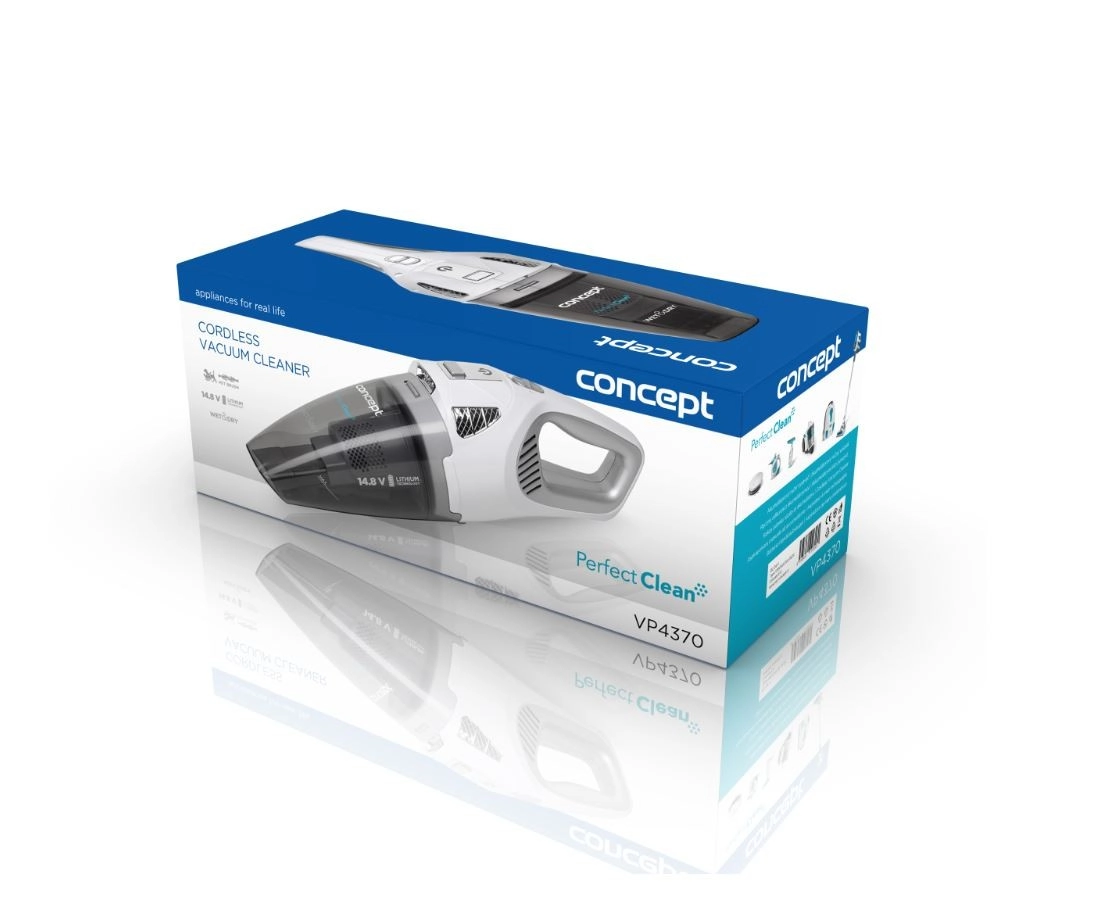 Den håndholdte støvsuger Concept VP4370 er let, ligger godt i hånden og er meget behagelig at bruge. Med én hånd suger du alle små urenheder uden at skulle række ud efter en klassisk og tung støvsuger. Desuden generer ingen ledning dig under arbejdet.