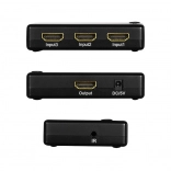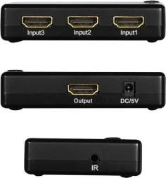 Den kompakte HDMI-switch gør det nemt at skifte mellem 3 HDMI-kilder på én skærm. Understøtter Full HD 1080p/60 Hz, Full 3D, HDCP, CEC og Deep Color 36 bit. Inkluderer fjernbetjening og strømforsyning DC 5 V for stabil overførsel af både billede og lyd.