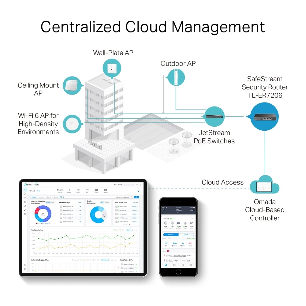 Routeren TP-Link ER7206 er det ideelle valg for organisationer, der kræver effektive løsninger til styring af flere internetforbindelser og sikring af sikker kommunikation mellem filialer. Takket være den integrerede platform Omada SDN muligtgør routeren centraliseret netværksstyring med funktioner som Zero-Touch Provisioning og cloud management.