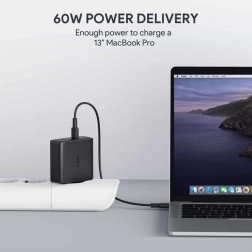 AUKEY PA-D5 er en moderne vægoplader med GaN-teknologi, som giver højere effektivitet i et mindre kabinet. Ved tilslutning af én enhed leverer den op til 60 W til hurtig opladning af bærbare, tablets og telefoner. Ved brug af begge USB‑C-porte fordeler den smarte styring Dynamic Detect effekten for eksempel til 45 W + 18 W for samtidig opladning af bærbar og smartphone.
