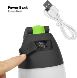 Powerbank-funktionen muliggør opladning af telefon, smartphone eller tablet via USB-porten på lampen, hvilket tilføjer ekstra bekvemmelighed og nytteværdi.