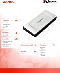 Gør dig klar til høj ydeevne med Kingston XS2000 SSD, som tilbyder læse-/skrivehastigheder på op til 2000MB/s. Med sit kompakte format og en kapacitet på op til 1000GB er den ideel til fotos i høj opløsning, 8K-videoer og store dokumenter. Den er kompatibel med USB Type-C og tilsluttes hurtigt til de fleste enheder.
