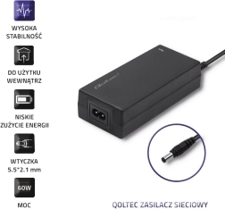 Pålidelig bordnetadapter fra QOLTEC til sikker strømforsyning af en bred vifte af enheder. Leverer 60 W effekt, udgang 12 V / 5 A, standard 5,5 × 2,1 mm stik og lavt energiforbrug takket være moderne teknologier. Et godt valg til skærme, routere, printere, scannere og anden elektronik.