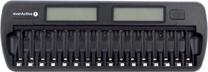 everActive NC-1600 oplader er det ideelle valg for alle, der har brug for pålidelig opladning af op til 16 AA- eller AAA-akkumulatorer på én gang. Denne oplader sikrer, at hver enkelt akkumulator oplades individuelt, hvilket optimerer opladningstiden og sikkerheden.