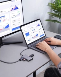 Hubben Aukey CB-C91 USB-C er faktisk en 8-i-1-fordeler. Tilslut den blot til én USB-port, og du får op til OTTE indgange, som er uundværlige til dagligt arbejde. Den er udstyret med tre USB 3.0-porte, USB-C Power Delivery, en HDMI-port, en Ethernet-port samt to kortpladser. Du kommer ikke længere til at mangle ledige USB-porte – fra nu af kan du tilslutte alle de enheder, du har brug for, og endda flere.