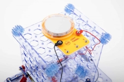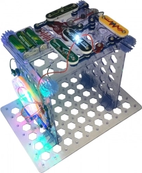 Alle dele klikkes nemt fast i det transparente gitter. Bygningen er hurtig, overskuelig og ideel til de første skridt i elektronik.