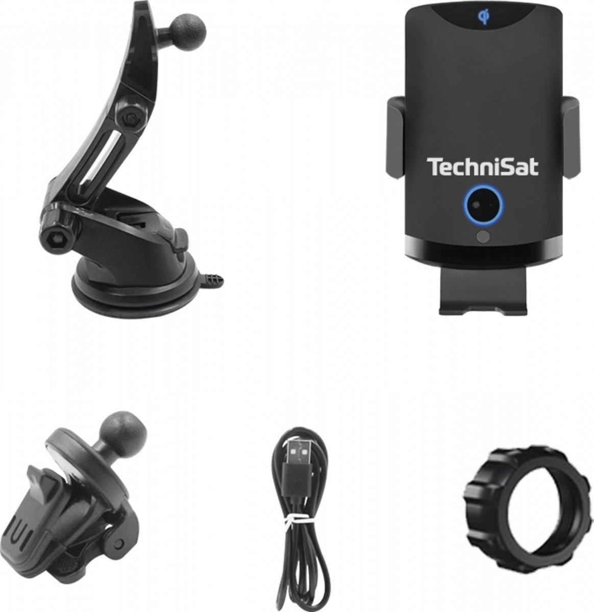 - Holder med trådløs opladning, sugekopholder, ventilationsklemme, USB‑C-kabel, monteringsring