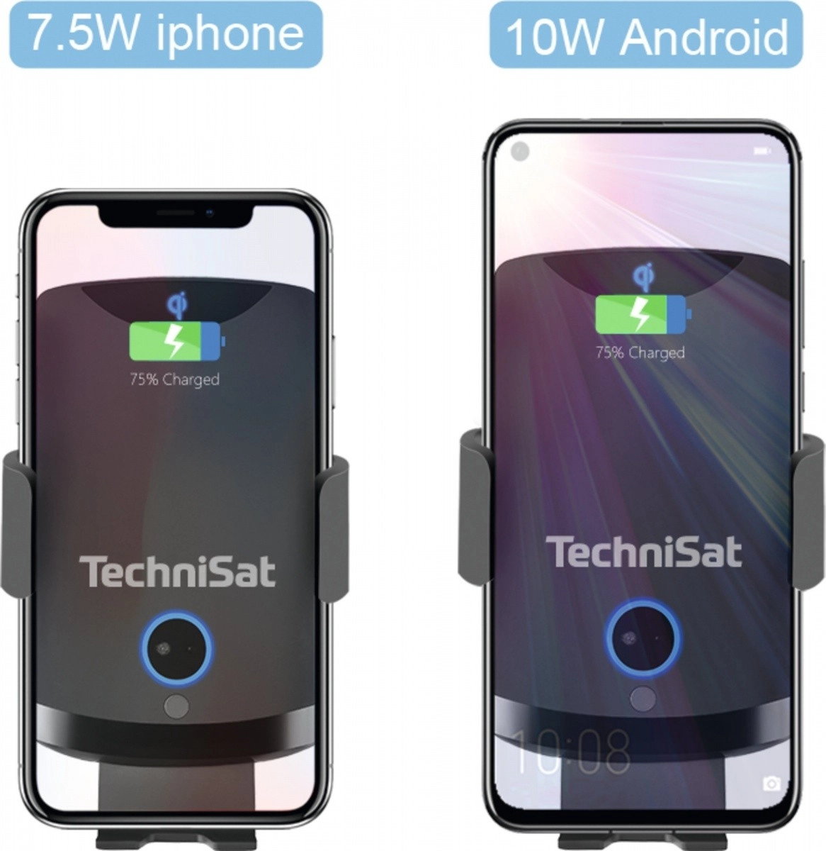 SmartCharge 2 er en pålidelig bilholder med integreret trådløs oplader, der gør hver køretur nemmere. Infrarød sensor åbner automatisk kæberne; efter indsættelse tilpasser armene sig selv og fastholder enheden sikkert. Takket være Qi‑kompatibilitet oplader du telefonen trådløst med op til 10 W (også 7,5 W og 5 W) – brug blot en biloplader med QC 2.0/3.0.