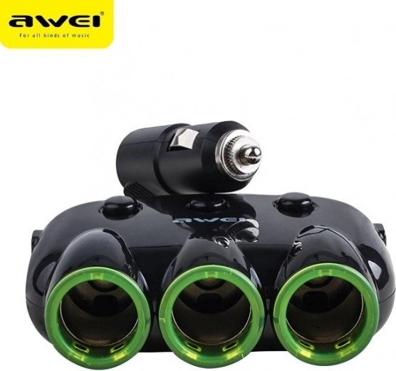 Awei C-3S er en kompakt biladapter, der forvandler din 12–24V cigarettænder til en universel strømhub. Tre udtag til cigarettænder suppleret af to USB-porte gør det muligt at forsyne og oplade op til fem enheder samtidig – fra navigation og dashcam til telefon eller tablet.