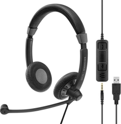 Headset med dobbel bøjle og støjreducerende mikrofon, kompatibelt med Microsoft Teams og andre førende UC-løsninger. Udstyret med 3,5 mm jack og USB-adapter for nem opkaldsstyring.