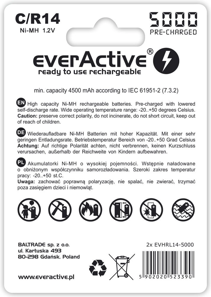 Disse akkumulatorer fra EverActive er fremragende til brug i lommelygter, legetøj og andre enheder. Takket være “ready to use”-teknologien kan de bruges som en direkte erstatning for alkaliske batterier.