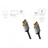 Pålidelig DisplayPort-kabel til overførsel af billede i opløsning op til 4K ved 60 Hz. Ideel til skærme, grafikkort og dokningsstationer med DP han – DP han stik. Kvalitetsudførelse med aluminiumskonnektorer og en robust kabelkappe sikrer stabilt signal og jævn visning.