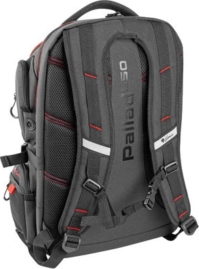 Genesis Pallad 550 er designet til gamere, der rejser med deres udstyr. Den robuste konstruktion af vandafvisende stof beskytter enhederne mod vejret, mens det ergonomisk formede bagpanel med net og luftkanaler sikrer komfort selv på varme dage. Polstrede, justerbare skulderstropper og et solidt øverste bærehåndtag bidrager til sikker og behagelig transport.