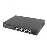 Pålidelig uadministreret switch med 16× PoE+ (802.3af/at) og 2× Combo Gigabit uplink tilbyder samlet PoE‑budget på 150 W, Extend‑tilstand op til 250 m med VLAN og overspændingsbeskyttelse 6 kV. Ideel til IP‑kameraer, VoIP og smarte bygninger, med mulighed for montering i 19" rack og enkel plug & play‑drift.