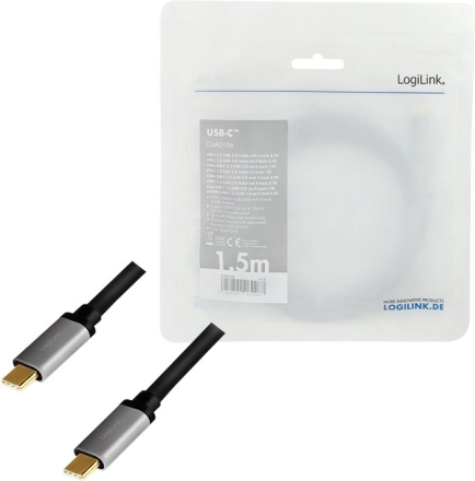 Det robuste aluminiumshus på konnektorerne og 2× afskærmning øger holdbarheden og forbindelsesstabiliteten, mens den integrerede E‑mark‑chipset sikrer sikker og effektiv strømforsyning. Længden 1,5 m giver komfortabel rækkevidde uden unødigt kabelrod.