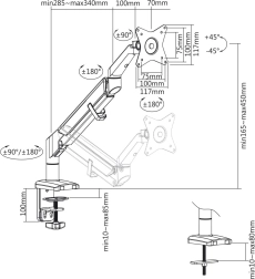 Den ergonomiske skærmholder tilbyder en fremragende løsning til både kontor og hjem. Let at installere takket være VESA-standard: 75x75, 100x100 mm. Med gasfjeder og justerbare led giver den mulighed for tilt, rotation og højdejustering, hvilket øger komforten og sikrer bedre synlighed under arbejdet. Fordele ved holderen: