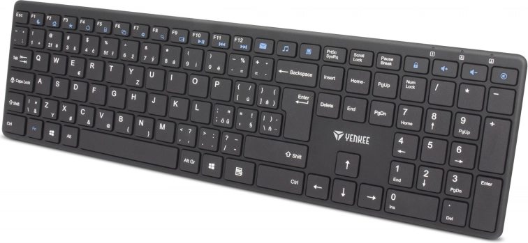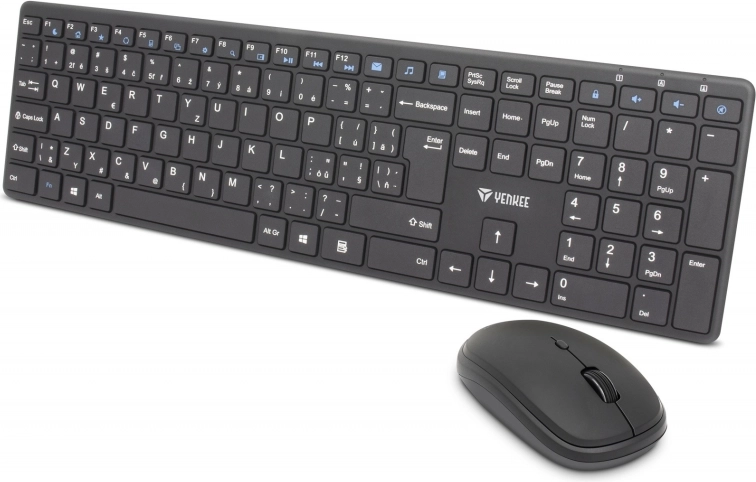 Det trådløse sæt med tastatur og mus Yenkee Tibe kendetegnes ved en pålidelig 2,4 GHz-forbindelse med en rækkevidde på op til 10 meter. Tastaturet er udstyret med numerisk blok og ekstra funktioner til effektiv betjening. Den optiske mus gør det muligt at justere opløsningen fra 800 til 1600 DPI, hvilket sikrer tilpasning af følsomheden efter individuelle præferencer.