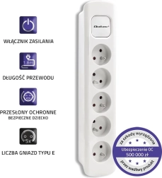 Denne strømfordeler gør det muligt at tilslutte flere enheder til én strømkilde, hvilket er ideelt til kabelorganisering under skrivebordet, bag tv’et eller i køkkenet. Med et elegant design i klassisk hvid tilpasser den sig ethvert interiør. Enheden er udstyret med en bagbelyst kontakt, som giver hurtig og nem kontrol over tændte enheder. Kontakten kan bruges som fodkontakt, hvilket er meget praktisk.