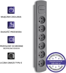 Find plads til alle dine enheder med denne grå forlængerledning, der tilbyder seks stikkontakter og en kabel længde på 1,8 meter. Velegnet til brug i både hjem og kontorer, hvor effektiv kabelhåndtering er nødvendig.