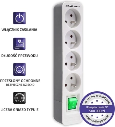 Denne forlængerledning er designet til at opfylde dine daglige behov i hjemmet eller på kontoret, samtidig med at den tilbyder elegance og enkelhed. Den leveres med 4 stik og en længde på 1,8 meter, hvilket giver tilstrækkelig rækkevidde. Den bagbelyste Quick Switch-afbryder gør brugen endnu nemmere ved at muliggøre hurtig tænd/sluk af enheder med ét tryk.