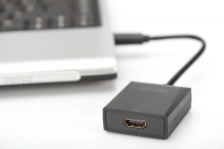Enheden forsynes med strøm direkte fra USB-porten, så der er ikke behov for en ekstern adapter. På computere kan der bruges op til to adaptere samtidigt, og skærme kan til- og frakobles uden systemgenstart. Adapteren vågner desuden automatisk fra dvale eller dvaletilstand for en glidende tilbagevenden til arbejdet.