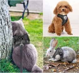 Med brede justeringsmuligheder kan du nemt tilpasse selen til forskellige kropsformer hos mindre hunde, katte og kaniner. Den bløde polstring forebygger hudafskrabninger og lader huden ånde, mens stærke spænder og en metalring til linen sørger for pålidelig kontrol.