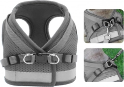 Den trykaflastende sele i grå er designet til hunde, katte og kaniner. Det lette, åndbare tekstil med blød polstring giver komfort uden skav og lader huden ånde. Justerbare remme tilpasses nemt dyrets krop, så selen sidder sikkert og ikke hæmmer bevægelsen.