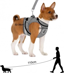 Der medfølger en aftagelig line (110 cm) med en robust metal-karabinhage. Reflekterende elementer øger synligheden i skumring og mørke, så gåturene er mere sikre. Et ideelt valg til daglige ture og træning.