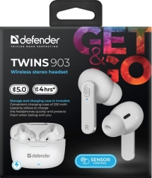 De trådløse høretelefoner Defender TWINS 903 tilbyder den perfekte kombination af komfort og funktionalitet, ideelle til daglig brug. Takket være deres ergonomiske design og silikonepropper er de behagelige selv ved længere tids brug. Kernen i brugervenligheden er den integrerede mikrofon og multifunktionsknap direkte på høretelefonerne, som gør det nemt at styre musik og opkald.