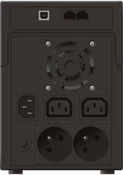 UPS’en er udstyret med to 230 V (Schuko)-stik og to IEC-udgange for nem tilslutning af flere enheder. Beskyttelse RJ11/RJ45 (IN/OUT) sikrer telefon- og datalinjer mod overspænding, og via USB-grænsefladen kan enheden overvåges og administreres. Et ideelt valg til pålidelig strømforsyning i hjemmet og i mindre kontormiljøer.