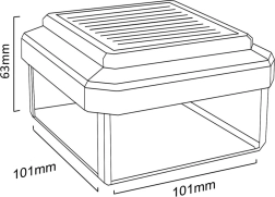 Denne solcelledrevne stolpehætte er ideel til dekorativ og praktisk belysning af hegns- og terrasse-stolper. I løbet af dagen oplades den af solen, og efter mørkets frembrud tændes den automatisk for at oplyse stier, trapper og indgange. Længere eksponering for direkte sollys giver længere driftstid om natten.