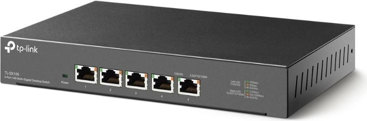Den kompakte 5-ports switch TP-Link TL-SX105 leverer 10G og multigigabit-ydeevne med op til 100 Gb/s switching-kapacitet. Takket være autonegotiation 100M/1G/2.5G/5G/10G tilpasser den sig intelligent dine enheder – fra 10G NAS og servere til gaming-PC og Wi‑Fi 6 adgangspunkter. Støjsvag, ventilatorløs drift, metalchassis og Plug and Play-installation gør den til et ideelt valg til hjem, kontor og LAN‑party.