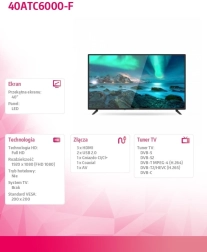 Allview 40ATC6000-F er et praktisk 40″ LED-tv, der leverer en velafbalanceret kombination af pris og ydeevne. Det passer til både stue og soveværelse og imponerer med naturlig farvegengivelse, solid skarphed og stabil drift. Takket være den enkle betjening og det overskuelige interface kan du hurtigt nyde film, sport og spillekonsoller.