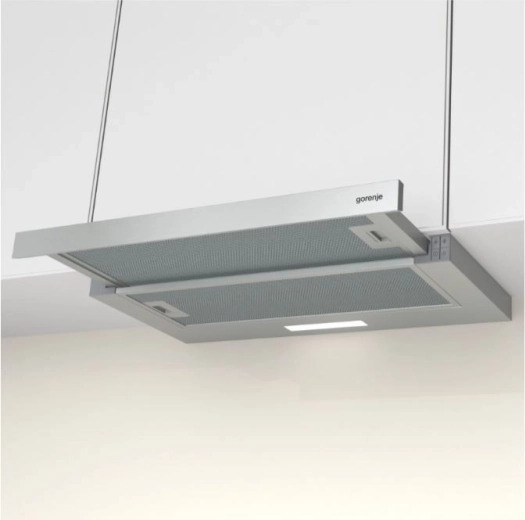 Den kompakte teleskopiske emhætte TH62E3X er ideel til mindre køkkener. Den tilbyder teleskopisk udtræk for højere effektivitet, pålidelig udsugning og recirkulation, nem betjening og elegant udførelse i rustfrit stål, som er let at vedligeholde.