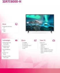 Denne 32-tommers LED-tv fra ALLVIEW er et fremragende valg til daglig visning af film, serier og nyheder. Takket være det kvalitetsstærke panel leverer den skarpe detaljer og naturlige farver, mens de slanke rammer og det elegante udseende passer ind i et moderne interiør.