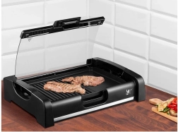 Elektrisk grill Lafe er den ideelle hjælper for alle, der ønsker at grille året rundt. Med sin multifunktionalitet tillader den grillning af kød, grøntsager eller bagværk. Du kan nemt forberede hjemme en saftig bøf, godt gennemstegt nakkekotelet, grillede grøntsager eller spyd med kyllingekød.