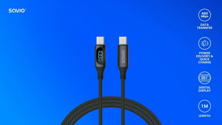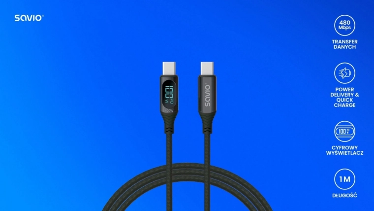Leder du efter et pålideligt kabel til moderne USB‑C‑enheder? Dette holdbare SAVIO‑kabel med op til 100 W leverer hurtig opladning og stabil dataoverførsel på 480 Mb/s. Det integrerede digitale display viser opladningseffekten i realtid, så du altid har overblik.
