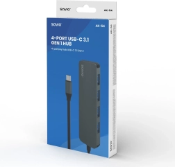 Udvid forbindelsesmulighederne på din USB‑C‑enhed med den kompakte Savio‑hub. De fire USB‑A‑porte lader dig tilslutte eksterne drev, tastaturer, mus og andre perifere enheder samtidigt. Standarden USB 3.1 Gen 1 sikrer hurtig dataoverførsel op til 5 Gbps, og enheden er bagudkompatibel med ældre USB‑versioner.