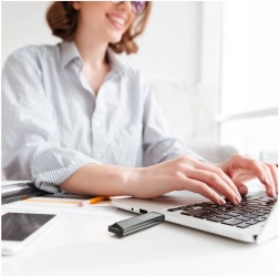 Den vendbare USB Type‑C sikrer bred kompatibilitet med moderne enheder – fra ultrabooks til tablets og smartphones med OTG. Takket være hullet til snor kan drevet nemt fastgøres til nøgler eller rygsæk, så det altid er ved hånden.
