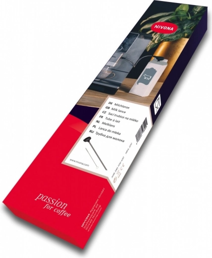 Helt enkelt: NIVONAs mælkelance er en praktisk måde at føre mælken direkte ind i din NIVONA-maskine. Hvordan? Helt simpelt. Uden ekstra slange eller adapter. Sæt blot mælkelancen ned i mælkekartonen, og så er du klar. Mælkekartonen kan efterfølgende nemt sættes i køleskabet. Mælkelancen kan desuden rengøres med den medfølgende børste og sæbevand.