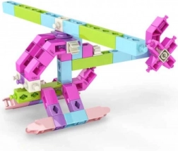 ENGINO Maker Girl 20-i-1 er et farverigt konstruktionssæt, der udvikler logisk tænkning, tekniske færdigheder og kreativitet. Med 111 dele og et gennemtænkt connectorsystem bygger du nemt 20 fantastiske modeller – helikopter, barnevogn, skib, gynge, giraf, snescooter og mange flere. Takket være de intuitive klikforbindelser er modellerne stabile, og byggeprocessen er sjov.
