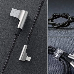 Det pålidelige AUKEY CB-AL01 kabel på 2 m er designet til komfortabel brug i landskabstilstand – Lightning- og USB‑A‑stik i 90° stikker ikke ud og ligger bedre i hånden. Den nylonflettede kappe af premium‑materialer er meget holdbar og samtidig fleksibel, så kablet knækker mindre og danner færre knuder.