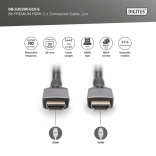 Førsteklasses HDMI 2.1 ultra high speed-kabel til overførsel af video op til 8K ved 60 Hz og 4K ved 120 Hz med støtte for HDR, 3D, ARC og CEC. Forgyldte stik og tredobbelt afskærmning sikrer et rent, stabilt signal uden forstyrrelser, mens aluminiums-hus og nylonflet garanterer høj holdbarhed. Længde 1 m, farve sort.