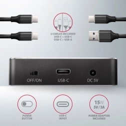 AXAGON ADSA-M2C skrivebords-dockingstationen giver nem og hurtig tilslutning af to NVMe (PCI-Express) M.2 SSD-drev til din computer. Forbindelsen sker via den vendbare USB‑C-stiktype, med mulighed for at bruge enten et USB‑C -> USB‑A- eller USB‑C -> USB‑C-kabel, som begge medfølger.